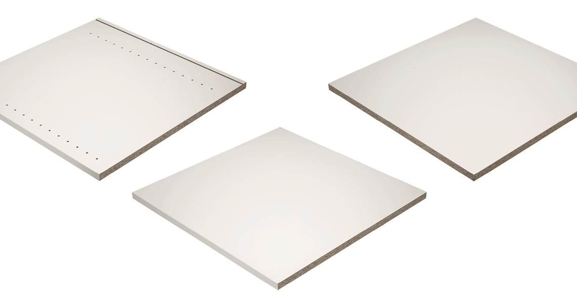 Et lagerprogram fra Swiss Krono af de mest anvendte korpuselementer, så som skabs-sider, top, bund og låger.