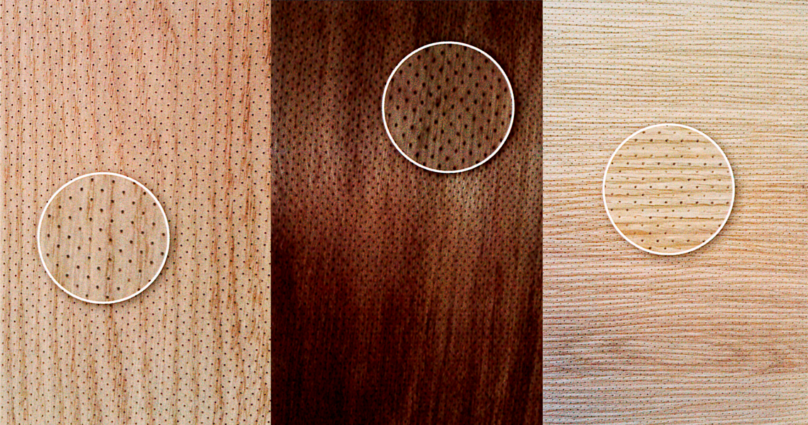 Fra nogle meters afstand vil panelerne ligne et normalt fineret panel, men de vil absorbere lyden betydeligt mere.