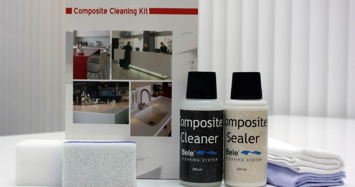 Har du brug for materialer til at vedligeholde din Corian overflade, forhandler vi ”Composite Cleaning Kit” til dette formål.