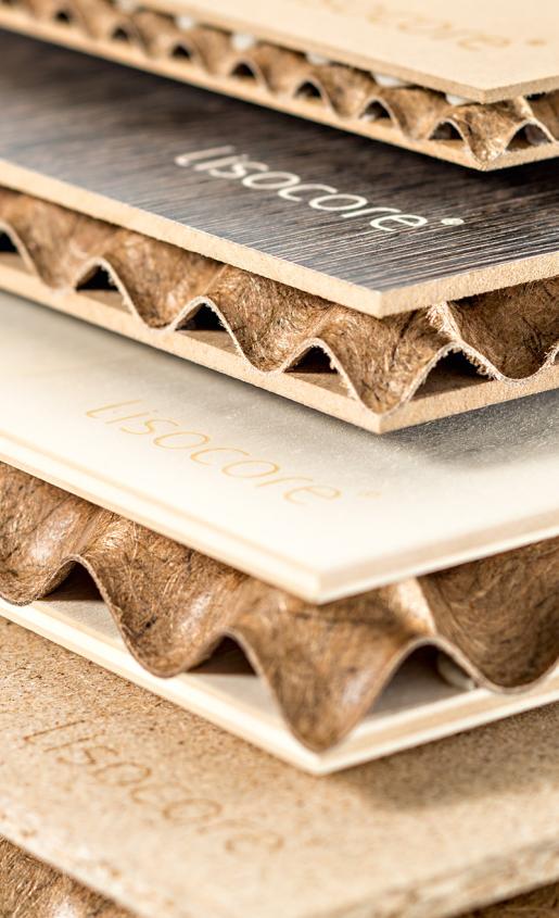 - LISOCORES opbygning gør, at man sparer mere end 50 % råmateriale, i forhold til en traditionel træbaseret plade