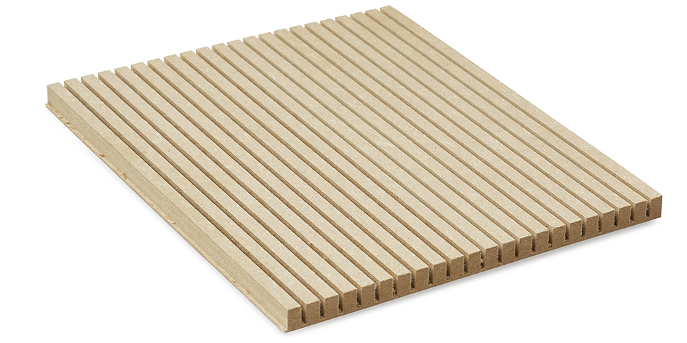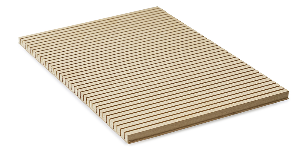 Bøjelige MDF-plader er på den ene side forsynet med en række parallelle riller, der er fræset dybt ned i pladen. Det er disse riller, der gør det muligt at bukke pladen, uden at den knækker. Forsiden forbliver helt glat, hvilket giver en jævn, buet overflade, når den er monteret.