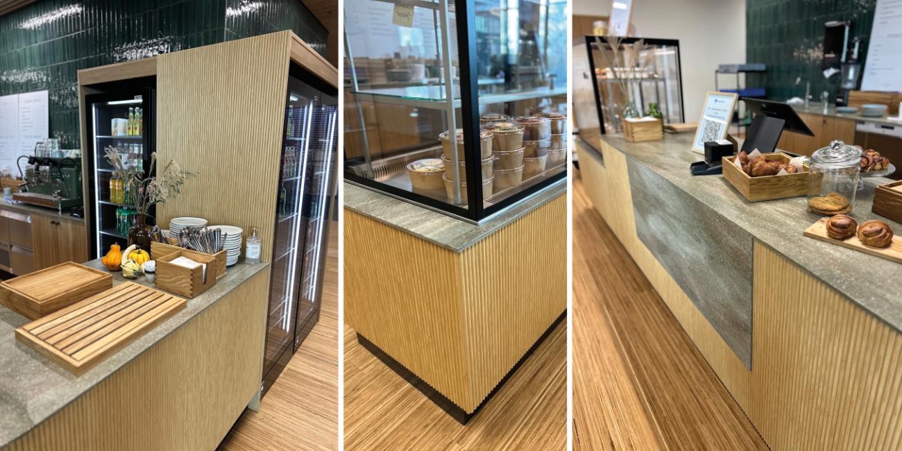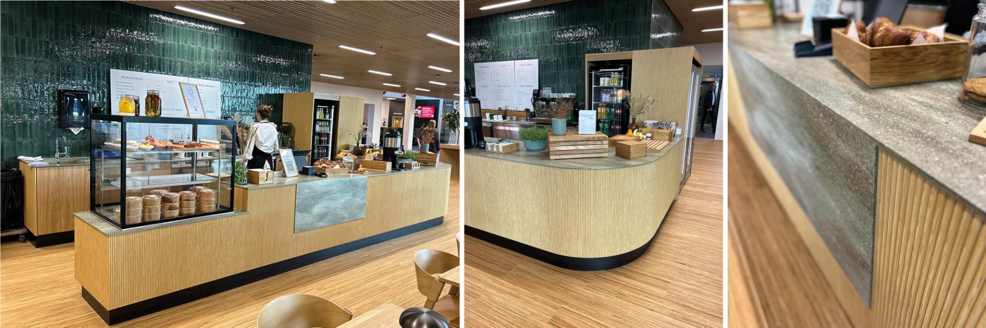 I samarbejde med Riisfort fandt Peter og Twitline frem til de formbare profilerede paneler fra italienske 4Design, der i dag pryder caféens disk.
