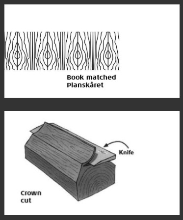 Kvaliteten på pladen er Europæisk eg A/A, planskåret book matched.