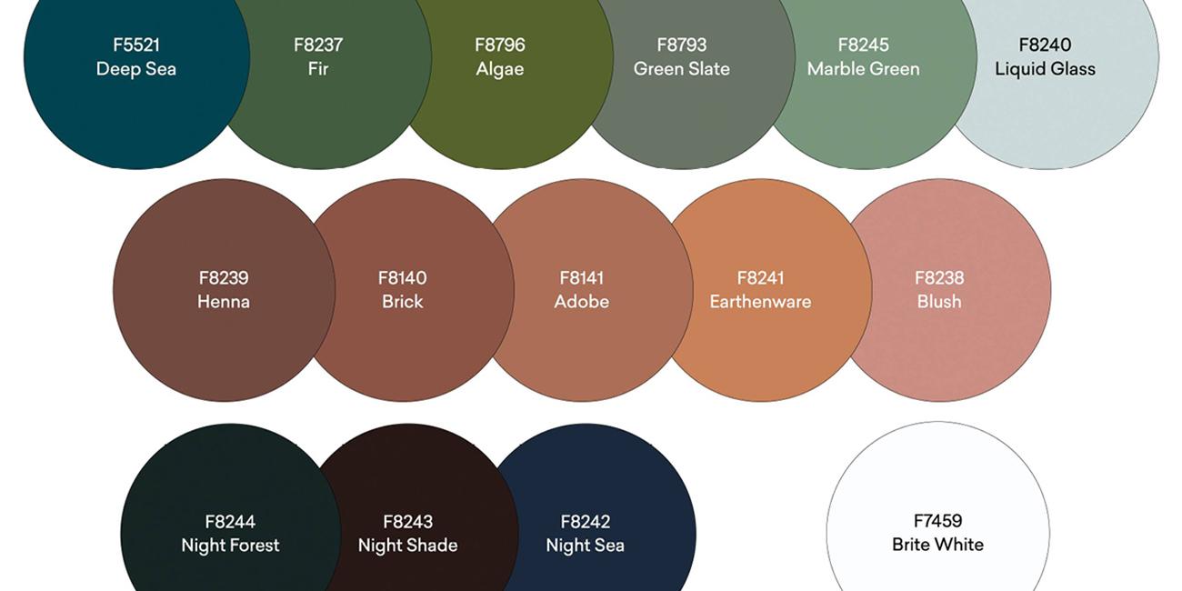 Farvepaletten i kollektionen udvides bl.a. med nye grønne dekorer, i naturtro og rolige nuancer. Den røde palette udvides med dekorer, der spænder fra terrakotta til mere mørkerøde dekorer, som f.eks. dekoren Henna. Night series er tre nye, næsten sorte dekorer - og sidst, men ikke mindst er den nye Brite White kommet til.